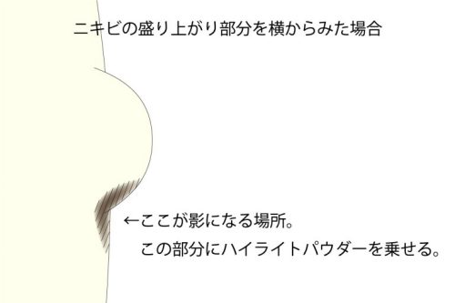 ポコっとしたニキビは、そのポコっと部分の下に影を作ってしまうので、ポコっと感が目立つのです。