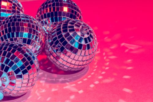 一つの球体に細かくカットされた小さいミラーが無数に張り付いている。ものすごい多面体です。