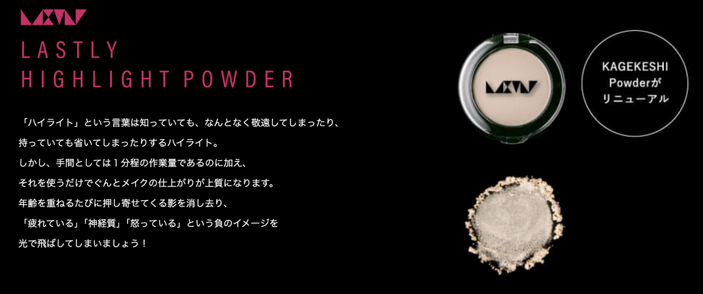 LASTLYのハイライトパウダーは、独自のナチュラルベージュカラーで、どなたでも白浮せず自然な仕上がりに。
